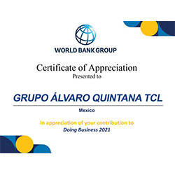 En el Grupo Álvaro Quintana nos sentimos honrados en compartir con ustedes nuestra participación en el Informe Doing Business 2021 del Banco Mundial